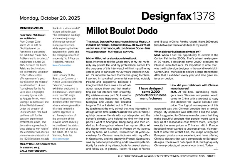 Created by Jean-Charles Gaté and taken over in 2016 by Christophe Chaptal, the professional newsletter Design fax is read by more than 10,000 people every week.